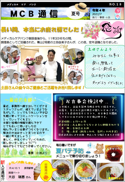 メディカルケアバンクの社内報(夏号)を追加しました。