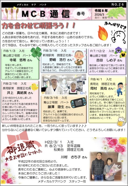 メディカルケアバンクの社内報(3月春号)を追加しました