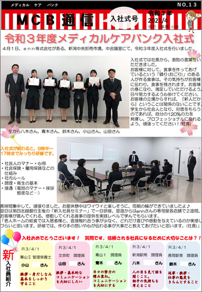 メディカルケアバンクの社内報(入社式号)を追加しました